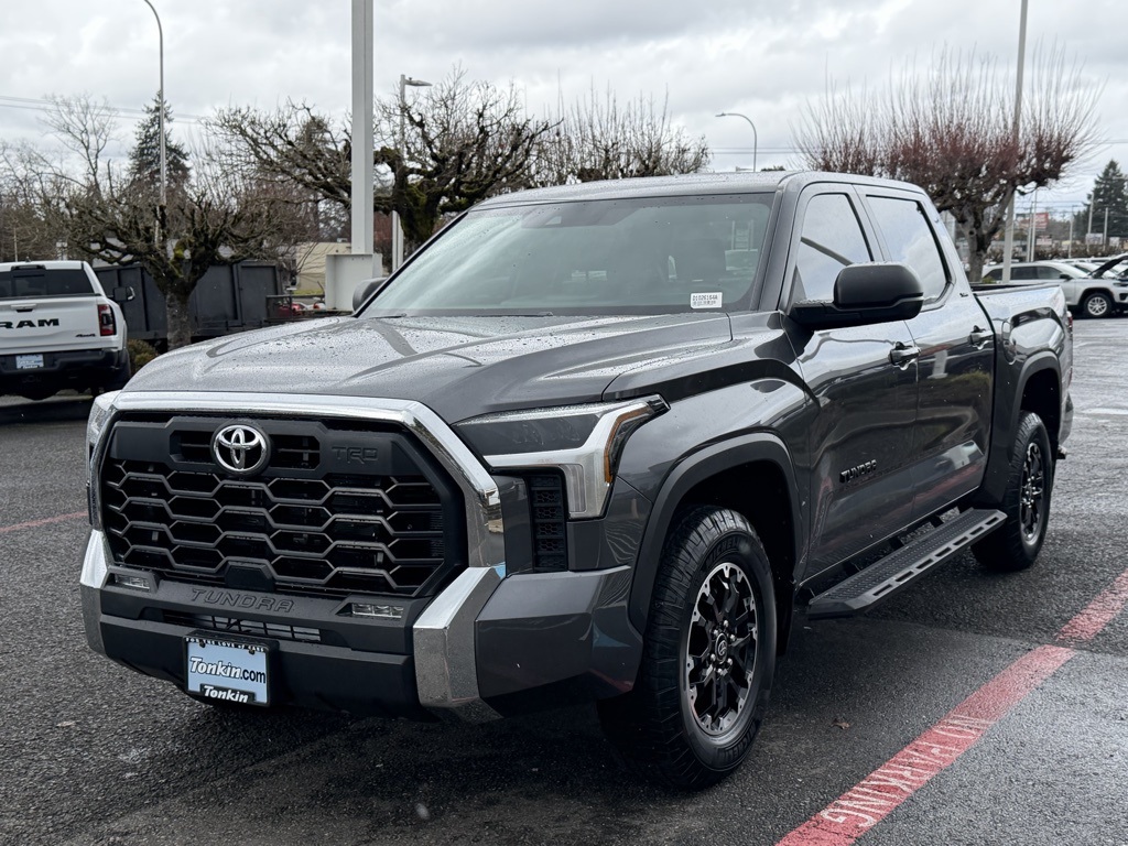 CARFAX One-Owner. 2025 Toyota Tundra SR5 3.4L V6 10-Speed Automatic 4WD 4D CrewMax Magnetic Gray Metallic 4WD, Black Cloth, TRD Off-Road Package, Wheels: 18" TRD Off-Road Alloy, 18" Alloy Wheels, 3.31 Axle Ratio, 4-Wheel Disc Brakes, 9 Speakers, ABS brakes, Air Conditioning, AM/FM radio: SiriusXM, Apple CarPlay/Android Auto, Auto High-beam Headlights, Automatic temperature control, Brake assist, Bumpers: body-color, Custom Fuel Wheels and Off-Road Tires, Delay-off headlights, Driver door bin, Driver vanity mirror, Dual front impact airbags, Dual front side impact airbags, Emergency communication system: Safety Connect (10-year trial), Exterior Parking Camera Rear, Fabric Seat Trim (FB), Front anti-roll bar, Front Bucket Seats, Front Center Armrest, Front fog lights, Front reading lights, Front wheel independent suspension, Fully automatic headlights, Heated door mirrors, Illuminated entry, Knee airbag, Low tire pressure warning, Occupant sensing airbag, Overhead airbag, Overhead console, Panic alarm, Passenger door bin, Passenger vanity mirror, Power door mirrors, Power driver seat, Power steering, Power windows, Radio data system, Radio: Audio Multimedia System, Rear reading lights, Rear step bumper, Rear window defroster, Remote keyless entry, Safety Connect, Security system, Speed control, Speed-sensing steering, Split folding rear seat, Steering wheel mounted audio controls, Tachometer, Telescoping steering wheel, Tilt steering wheel, Traction control, Trip computer, Variably intermittent wipers, Voltmeter. Come in to Ron Tonkin Chrysler Jeep Dodge Ram Fiat in Milwaukie to test drive today! DL0087.