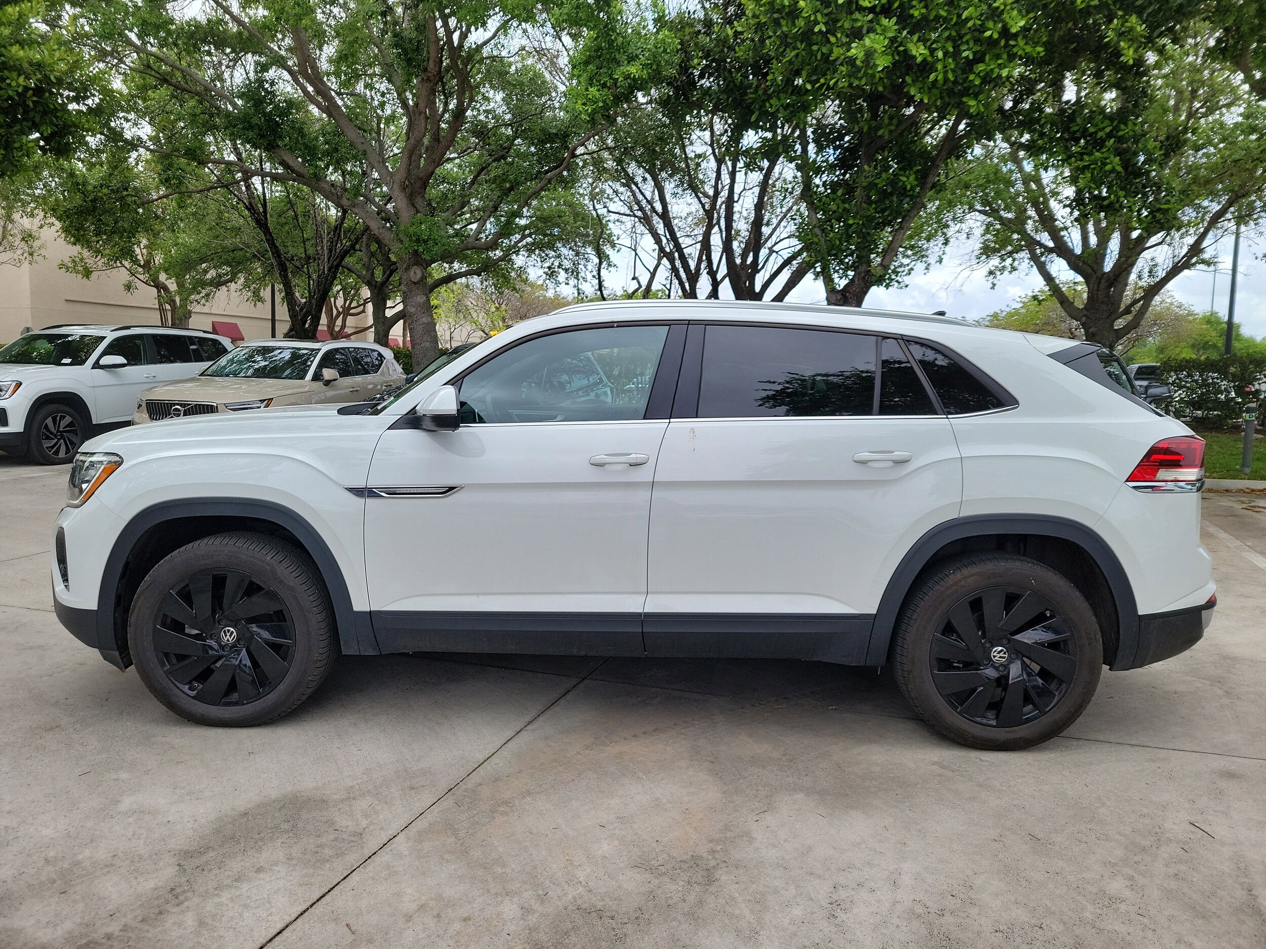Recent Arrival! Carfax One-Owner. Pure White 2025 Volkswagen Atlas Cross Sport 2.0T SE w/Technology 2.0L TSI 8-Speed Automatic with Tiptronic FWD Black Wheel Package (Wheels: 20" Multi-Spoke Black Painted Alloy), Panoramic Sunroof Package (Power Tilting & Sliding Panoramic Sunroof), 4-Wheel Disc Brakes, 4-Wheel Independent Suspension, 6 Speakers, ABS brakes, Air Conditioning, Alloy wheels, AM/FM radio: SiriusXM with 360L, Auto High-beam Headlights, Auto-dimming Rear-View mirror, Automatic temperature control, Brake assist, Bumpers: body-color, Compass, Delay-off headlights, Driver door bin, Driver vanity mirror, Dual front impact airbags, Dual front side impact airbags, Electronic Stability Control, Emergency communication system: VW Car-Net Safe & Secure 5-year, Exterior Parking Camera Rear, Four wheel independent suspension, Front anti-roll bar, Front Bucket Seats, Front Center Armrest, Front dual zone A/C, Front fog lights, Front reading lights, Fully automatic headlights, Heated & Actively Ventilated Front Seats, Heated door mirrors, Heated front seats, Heated steering wheel, Heavy Duty Trunk Liner w/VW CarGo Blocks, Illuminated entry, Low tire pressure warning, Monster Mats Rubber Mats (Set of 4), Occupant sensing airbag, Outside temperature display, Overhead airbag, Overhead console, Panic alarm, Passenger door bin, Passenger vanity mirror, Perforated V-Tex Leatherette Seating Surfaces, Power door mirrors, Power driver seat, Power Liftgate, Power steering, Power windows, Radio data system, Radio: MIB3 Composition Media AM/FM/HD, Rain sensing wipers, Rear anti-roll bar, Rear reading lights, Rear seat center armrest, Rear window defroster, Rear window wiper, Remote keyless entry, Rubber Mats Kit, Security system, Speed control, Speed-sensing steering, Split folding rear seat, Spoiler, Steering wheel mounted audio controls, Tachometer, Telescoping steering wheel, Tilt steering wheel, Traction control, Trip computer, Turn signal indicator mirrors, Variably intermittent wipers, Ventilated front seats, and Wheels: 20" 5-Spoke 2-Tone Machined Alloy. Odometer is 2068 miles below market average! Priced below KBB Fair Purchase Price! 20/26 City/Highway MPG CALL USED CAR SALES FOR INFORMATION AND IMMEDIATE ASSISTANCE 954-590-3760.