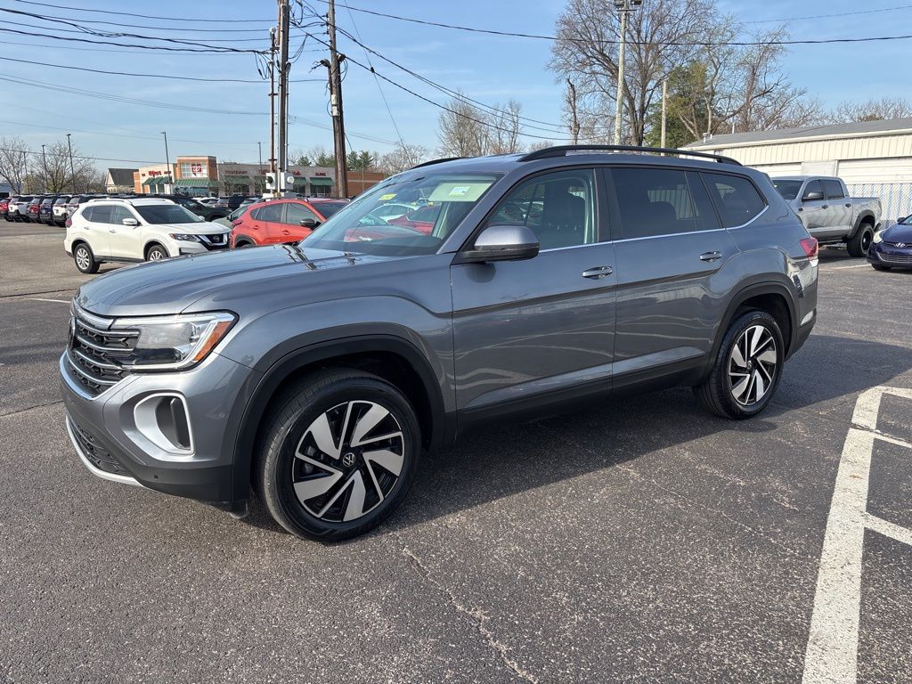 CARFAX One-Owner. 2025 Volkswagen Atlas 2.0T SE w/Technology 4D Sport Utility Platinum Gray Metallic FWD 2.0L TSI 8-Speed Automatic. Odometer is 1226 miles below market average! 20/26 City/Highway MPG. NOT LOCAL? LET US SEND YOU A CUSTOM VIDEO PRESENTATION OF THIS VEHICLE! CALL 1-502-448-6666 or visit www.neilhuffmanmazda.com, www.neilhuffmansubaru.com, www.neilhuffmanvolkswagen.com. Why Buy from Neil Huffman Auto Group? Our exclusive Huffman Value Pricing gives you a real-time, market-based price- we don’t believe in artificially inflating prices just to play a negotiating game. Just honest pricing from the start with no haggling. Every qualifying vehicle comes with the Huffman Platinum Plan Warranty covering you for the first 90 days or 3000 miles of ownership. 3 years of complimentary maintenance with every purchase! Not 100% satisfied? Our Huffman 7-day like-it or exchange-it promise allows you to return every qualifying vehicle within 7 days or 150 miles (whichever comes first) and exchange it for another of equal or greater value. No pressure, no hassle! We’ll buy your car even if you don’t buy ours! Huffman Has It!
