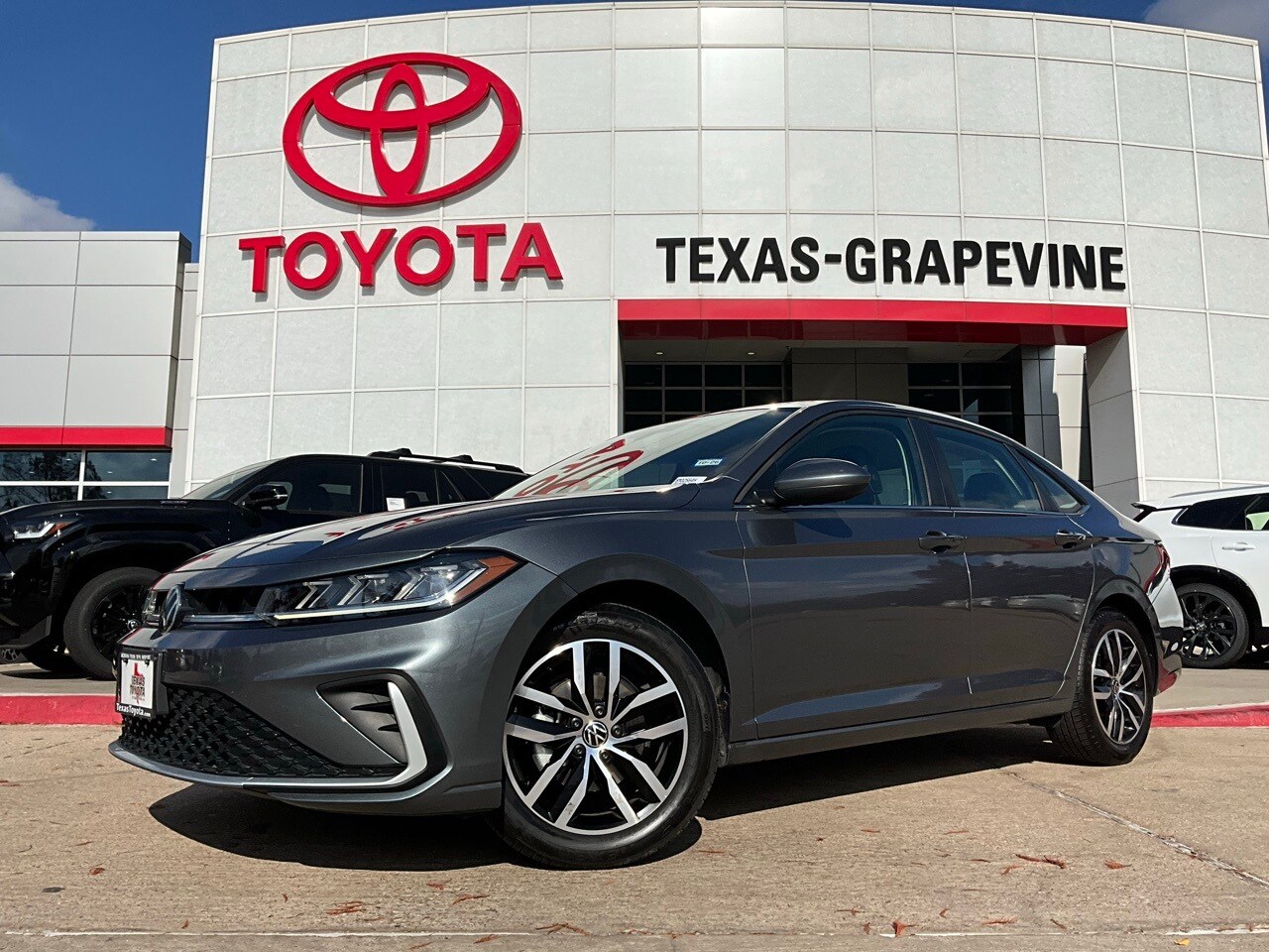 2025 Volkswagen Jetta 1.5T SE. Located just minutes from DFW Airport, Texas Toyota of Grapevine is the premier Toyota dealership to meet all of your needs. Clean CARFAX. Backup Camera, Blind Spot Monitor with Rear Cross-Traffic Alert, Heated Seats, LED Accent Lighting, Night Vision Auto-Dimming Mirror, Remote Start, Wheels, across from DFW Airport, Lane departure alert with sway warning, Auto High Beams, Push Button Start, Apple CarPlay Compatible, Android Auto, Grigio/Titan Black with CloudTex & V-Tex Leatherette Seat Trim, 4-Wheel Disc Brakes, 6 Speakers, ABS brakes, Active Blind Spot Monitor, AM/FM radio: SiriusXM with 360L, Auto-dimming rearview mirror, Automatic temperature control, Brake assist, Bumpers: body-color, CloudTex & V-Tex Leatherette Seat Trim, Delay-off headlights, Driver door bin, Driver vanity mirror, Dual front impact airbags, Dual front side impact airbags, Electronic Stability Control, Emergency communication system: VW Car-Net Safe & Secure 5-year, Exterior Parking Camera Rear, Front anti-roll bar, Front Bucket Seats, Front Center Armrest, Front dual zone A/C, Front wheel independent suspension, Fully automatic headlights, Heated door mirrors, Heated Front Seats, Heated front seats, Illuminated entry, Leather Shift Knob, Leather steering wheel, Low tire pressure warning, Occupant sensing airbag, Outside temperature display. Backup Camera Backup Camera.