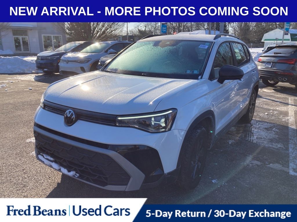 Recent Arrival! 2025 Volkswagen Taos 1.5T S 1.5L I4 Turbocharged DOHC 16V LEV3-SULEV30 174hp 8-Speed Automatic with Tiptronic FWD 4D Sport Utility Pure White Bought & Serviced at Fred Beans, Local Trade, Great Service History, Remainder of Factory Warranty, Auto Reward Program. CARFAX One-Owner. Clean CARFAX. For better peace of mind all our used vehicles have a 127-point inspection and come with a 5-day return, 30-day exchange (As-Is vehicles are excluded). Our exclusive Auto Rewards Program provides better value with $50 Service Gift Certificate, Free Pa State Safety inspections, discounts for local merchants and more. Plus, you can earn up to $2000 towards your next vehicle just by servicing with Fred Beans! As Fred Beans always says, our used cars are better because our reputation depends on it.