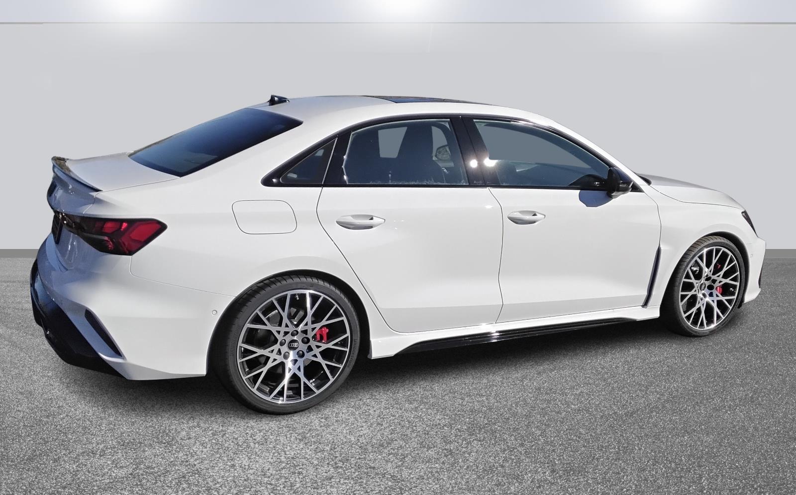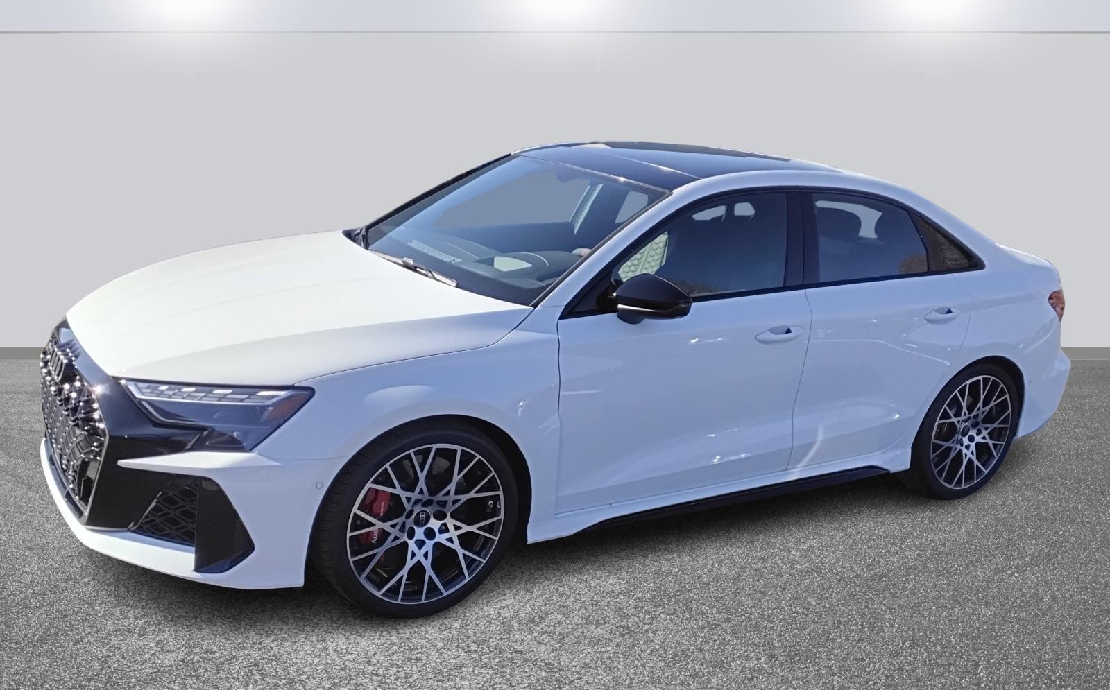 This Arkona White 2026 Audi RS 3 is a great choice! Check out the following: Dynamic Plus Package ($5,600 value) Carbon Engine Cover Ceramic Front Brakes with Red Calipers 180 Mph Top Speed Limiter Ultra High Performance Summer Tires RS Design Package – Red ($700 value) Floor Mats with RS Logo & Express Red Stitching on Piping. This RS 3 has the following features: Forward collision mitigation – Forward thinking. You look away for just a second and suddenly the vehicle in front of you has stopped. That’s when the forward collision mitigation system comes to life. When it senses an impending impact, it will activate a combination of features to help prevent or reduce the severity of an accident. Forward collision mitigation is always looking ahead. Pedestrian impact prevention – An extra step toward safety. Pedestrians don’t always stop, look, and listen, but with Pedestrian Impact Prevention, your vehicle is equipped to better see them and avoid them. This system constantly monitors the road ahead to identify and track pedestrians. It projects that image to an interior display screen, and should an impact become likely, Pedestrian impact prevention takes steps to avoid a collision. Hands-on cruise control. Set it and forget it. Road trips used to be stressful. Cruise control only managed speed, but not distance or safety. Now, with hands-on cruise control, simply set your desired speed and let sensor technology maintain a safe distance between you and surrounding vehicles. It slows you down; speeds you up and even keeps you in your own lane. Meet your ultimate co-pilot with hands-on cruise control. Rear camera – Watching your back! The rear camera helps you see obstacles and hazards you otherwise couldn’t by showing enhanced images of what is behind you. The rear camera is an extra set of eyes that’s both convenient and safe. Audi smartphone interface (wireless Apple CarPlay/wired Android Auto) smart device wireless mirroring.