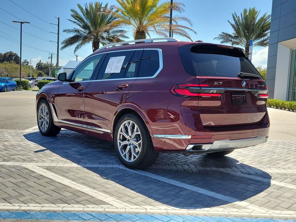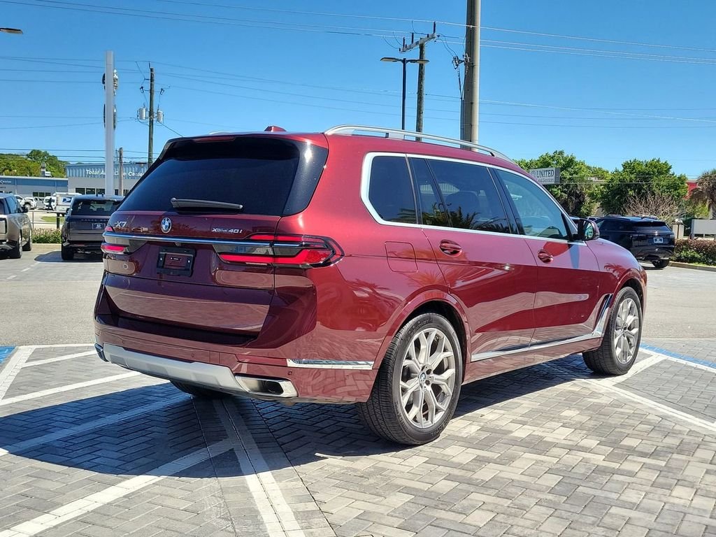 Recent Arrival! Priced below KBB Fair Purchase Price! This 2026 Aventurin Red Metallic BMW X7 xDrive40i AWD is well equipped and includes these features and benefits. 8-Speed Automatic Sport 3.0L I6 DOHC 24V Clean CARFAX. 5-Zone Automatic Climate Control, Climate Comfort Package, Connected Package Pro, Distance Control (ACC) with Steering Assistant, Driving Assistance Professional Package, Driving Assistant Professional, Electric Rear Side Window Shades, Exterior Parking Camera Rear, Front and Rear Heated Seats, Front Ventilated Seats, Harman/Kardon Surround Sound System, Heads-Up Display, Lane Change Assistant, Limited Term Highway Assistant, Navigation system: BMW Maps Navigation, Partial Automated Driving, Power moonroof, Premium Package, Soft-Close Automatic Doors, Wheels: 21" x 9.5" Dual-Spoke Bicolor Orbit Grey. Discover The Difference at Jaguar Land Rover Treasure Coast!