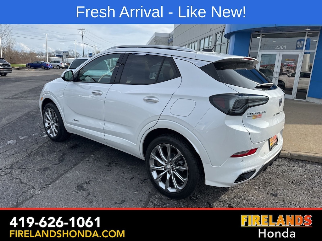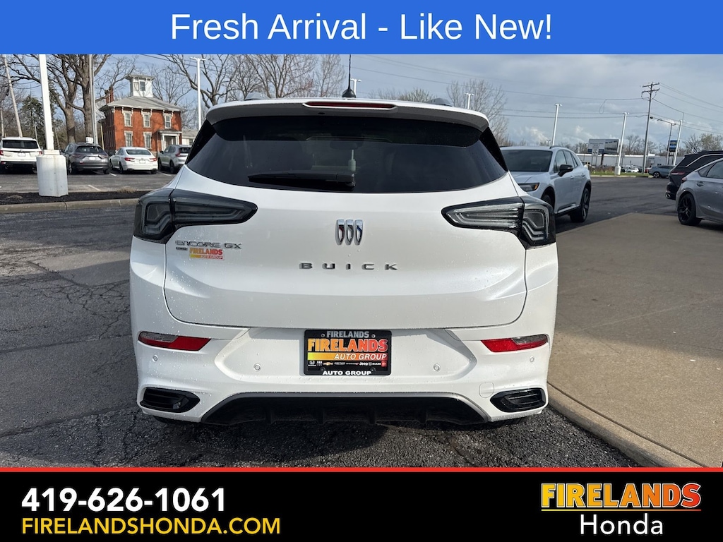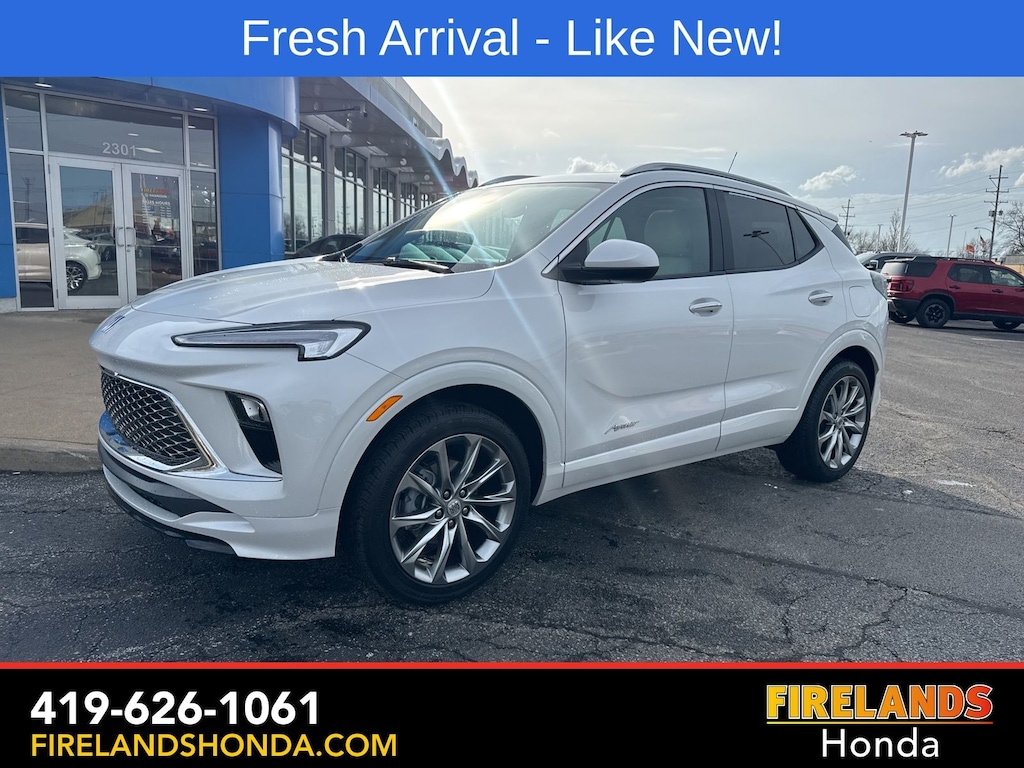 Firelands Honda is proud to offer this terrific 2026 Buick Encore GX in White Frost Tricoat. This Encore GX has been checked by our award winning service department. Hot features include: Bluetooth Hands Free, Back Up Camera, Navigation / GPS, Remote Start, Adaptive Cruise Control, Balance of Factory Warranty, Service Records Available, All-Wheel Drive, Heated Leather Seats, Locally Owned New Car Trade, Lane Departure Warning, Apple Carplay/Android Auto, Blind Spot Detection, Fog Lights, Automatic Emergency Braking, Forward Collision Warning, Rear Cross Traffic Alert, Panoramic Moonroof, Clean CARFAX, One Owner, No Accidents, Power Liftgate, Memory Seats, Heated Steering Wheel, Bose Speakers, Avenir Convenience Package, Bose Premium 7-Speaker Audio System, Front Intermittent Rainsense Wipers, Hands Free Power Liftgate, Preferred Equipment Group 1SL, Rear Park Assist.