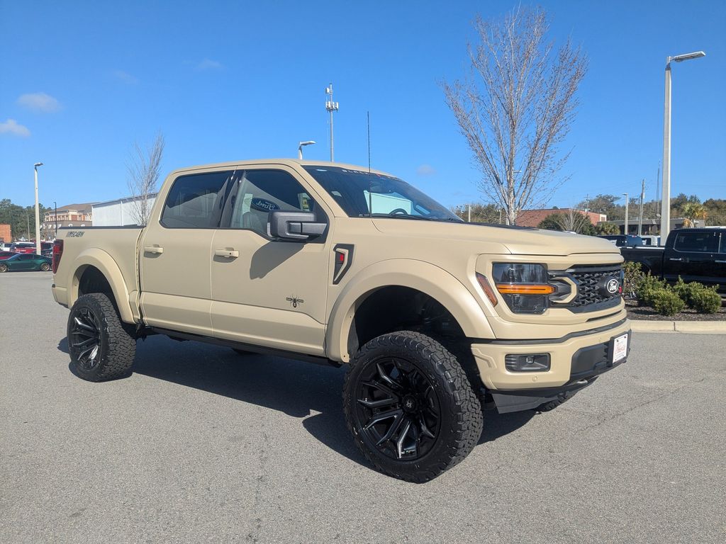 Unapologetically bold and built to dominate the road, this 2026 Ford F-150 XLT Black Widow, VIN 1FTFW3L59TKD07368, delivers head-turning presence with full military matte paint and a professionally engineered upfit. A 6-inch lift, 22-inch machined dark gray tint wheels, and 35-inch premium all-terrain tires create an aggressive, high-stance profile. Body-color smooth fender flares, custom hood vents, Black Widow fender vents with painted accents, and an upgraded grille sharpen its commanding look, while a performance exhaust with black tips adds an unmistakable tone. Power running boards enhance everyday usability. Inside, leather seats with custom stitching and Black Widow custom stitch headrests set the tone, complemented by red LED interior lighting, logo carpeted floor mats, and a serialized dash badge. Exterior details include a black military badging package, LED puddle lights, logo center caps, and a Black Widow windshield header. This Black Widow upfit is FMVSS compliant and backed by a 3-year/36,000-mile warranty, delivering striking style with built-in confidence. Price does not include Tax, Title and License fees; Price does include: $2000 - Retail Customer Cash. Exp. 03/31/2026 Prior to the vehicle’s arrival at our location, photos are provided by Ford Motor Company. J.C. Lewis Ford may choose to accessorize and up-fit this vehicle prior to making it available for sale.