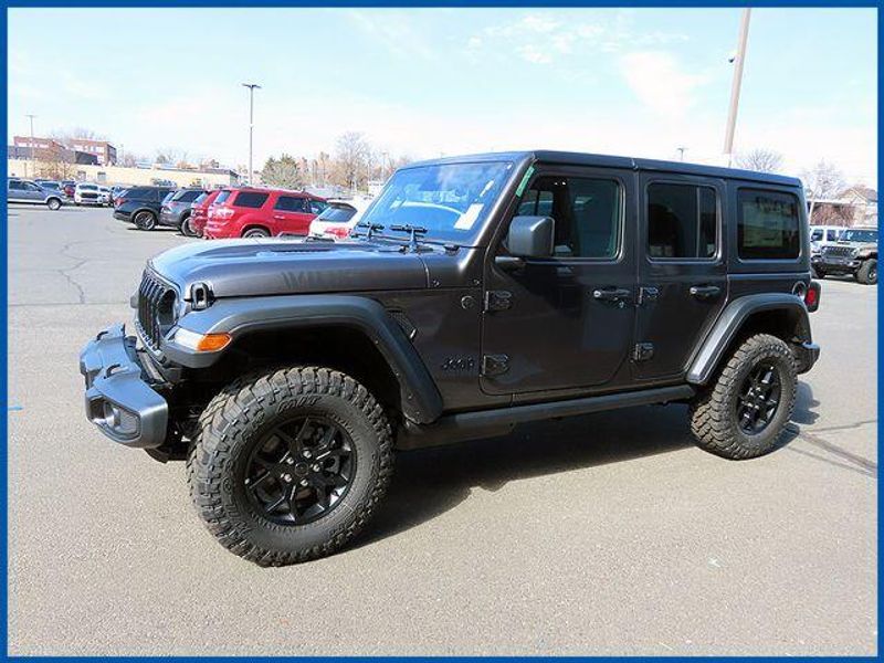 Wrangler Willys Willys 4 Door 4x4, 3.6L V6 24V VVT, 4WD, 2-Door Passive Entry, Front Door Locks, 4-Wheel Drive Swing Gate Decal, 4.10 Rear Axle Ratio, 7 and 4 Pin Wiring Harness, Advanced Brake Assist, Air Conditioning with Auto Temp Control, Air Filtering, Automatic Headlamps, Auxiliary Switches, Class II Receiver Hitch, Cluster 7.0'' TFT Color Display, Convenience Group, Conventional Differential Front Axle, Corning Gorilla Glass, Dana M210 Wide HD Tube Front Axle, Dana M220 Wide Rear Axle, Daytime Running Lamps LED Accents, Deep Tint Sunscreen Windows, E-Locker Rear Axle, Emergency/Assistance Call, Enhanced Adaptive Cruise Control, Front LED Fog Lamps, Full Speed Forward Collision Warning Plus, Heated Front Seats, Heated Steering Wheel, Injection Molded Black Rear Bumper, LED Premium Reflector Headlamps, Mold in Color Bumper with Gloss Black, Molded in Color Rubicon Highline Flare, MOPAR All-Weather Floor Mats, Off-Road Plus Mode, Power Heated Mirrors, Premium Wrapped Steering Wheel, Quick Order Package 24W Willys, Security Alarm, Sun Visors with Illuminated Vanity Mirrors, Trailer Tow and Auxiliary Switch Group, Universal Garage Door Opener, Wheels: 17'' x 7.5'' Painted Black, Willy's Suspension, Willys Hood Decal.