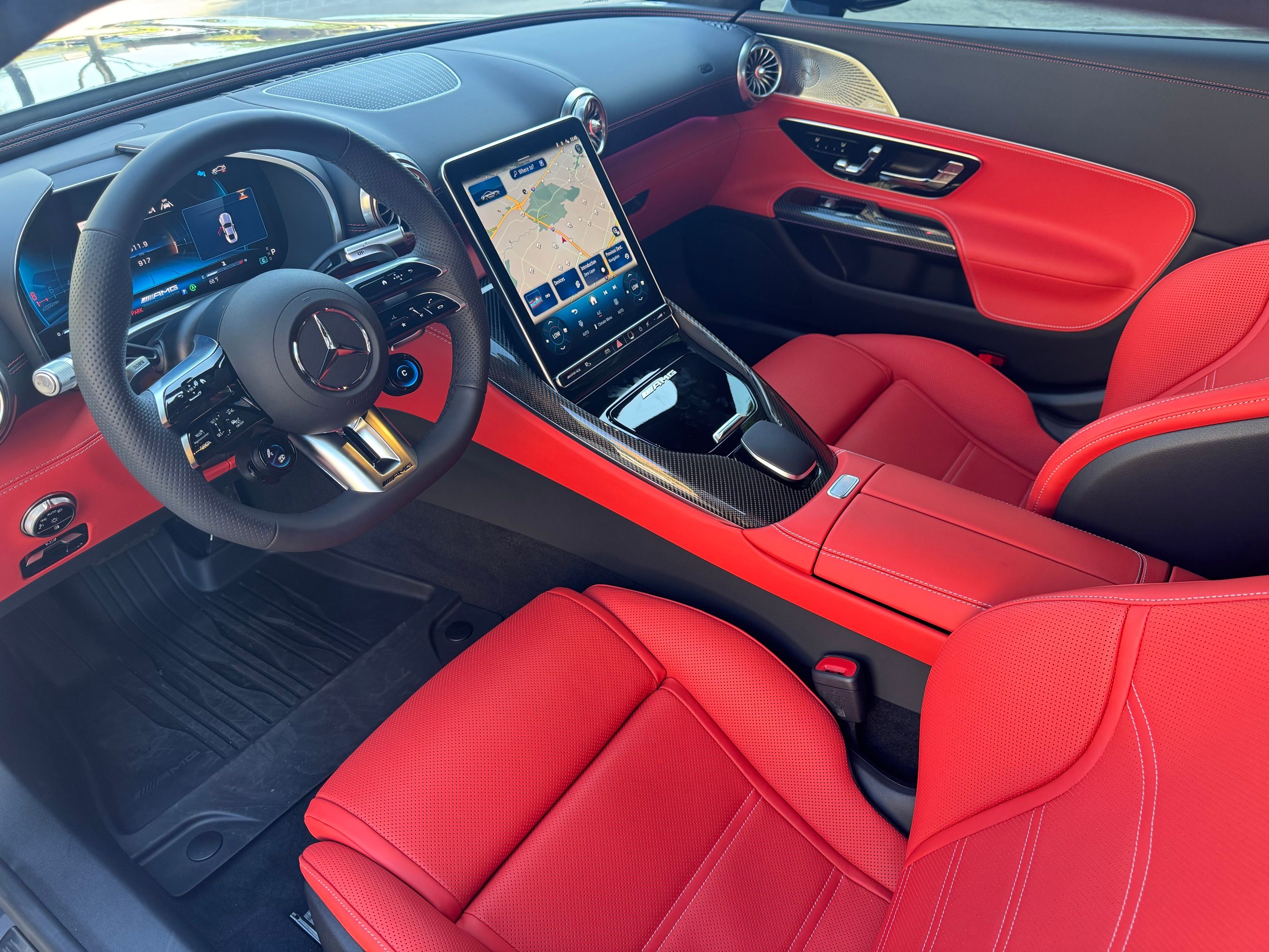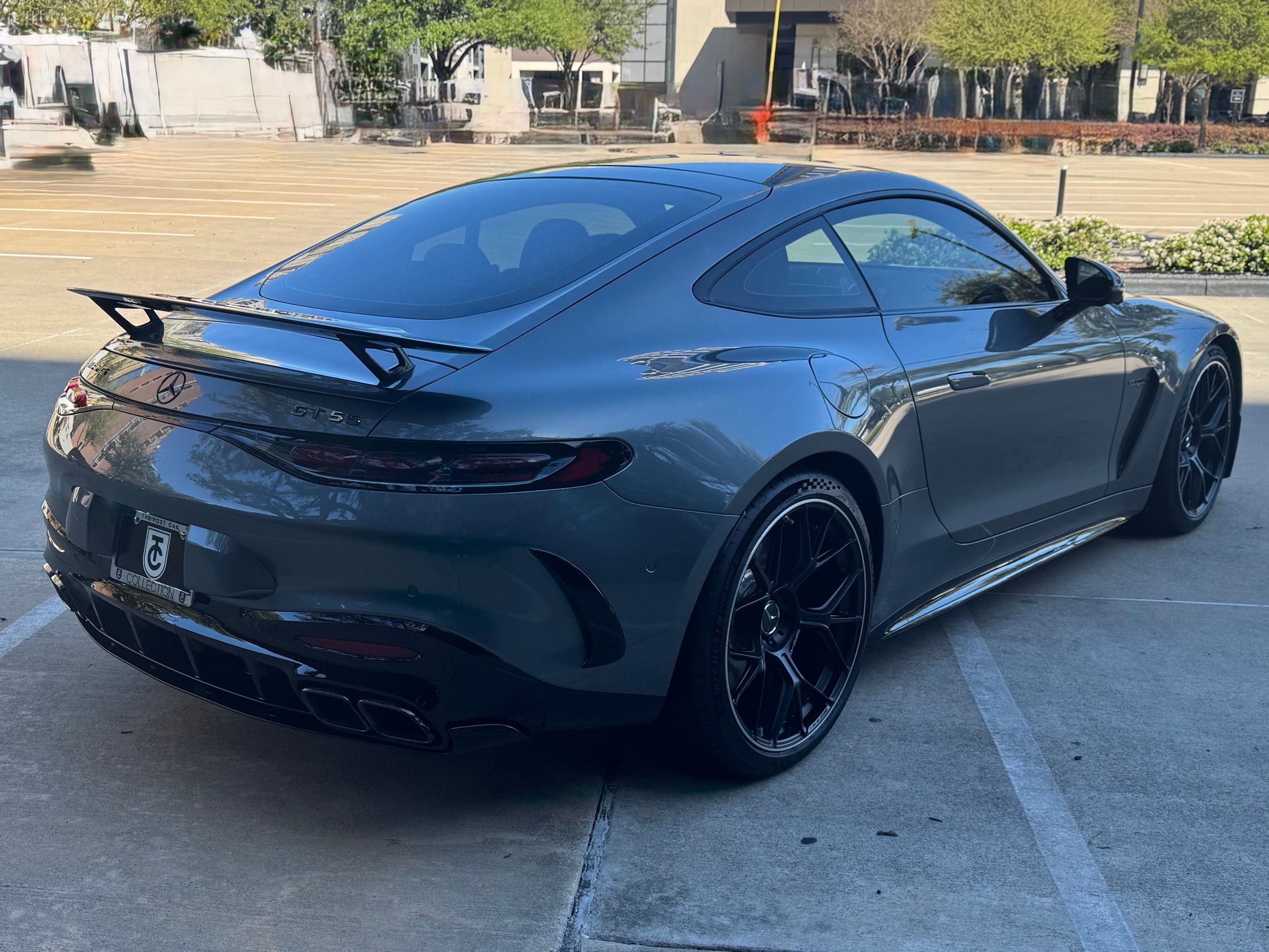 2026 Mercedes-Benz AMG GT55 presented by Post Oak Motor Cars. Selenite Grey Metallic Exterior with Pepper Red Nappa Leather Interior, this GT55 features 21 AMG Forged Split Spoke Wheels in Black, Driver Assistance Package, Night Package, AMG Aerodynamics Package, AMG Night Package Plus, Multicontour Front Seats with Massage Function, Heated and Ventilated Seats, Fixed Panorama Roof, Black Painted AMG Brake Calipers, Black DINAMICA Headliner, AMG Carbon Fiber Trim, Energizing Air Control, Energizing Comfort Package Plus and First-Aid Kit.