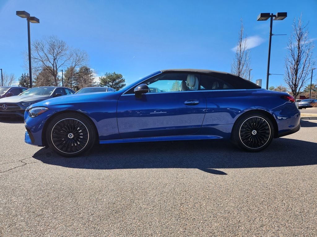 2026 CLE 300 Cabriolet 4MATIC. 970 Starling Blue Metallic $750. 205 Macchiato Beige/ Black Leather $1,620. Options include Night Package, AMG Line Package, Sport Suspension, AMG Body Styling, Sound generator, Multifunction Sport Steering Wheel, AMG Line Interior and Exterior, Floor Mats, Sport Brake system with "Mercedes-Benz" lettering, MB-Tex Dashboard with Nappa Look, AMG spoiler lip, Owners Manual, Apple CarPlay, Android Auto, Auto-dimming Driver and Rearview Mirrors, Heated Steering Wheel, Power Folding Mirrors, HD Radio, Black Headliner, Side Mirror Logo Projector, Winter Package, All Season Tires, Extended Mobility Tires, AMG Multispoke Wheels - Black, Rear belt status indication in the instrument display, Wheel Locking Bolts, First-Aid Kit.