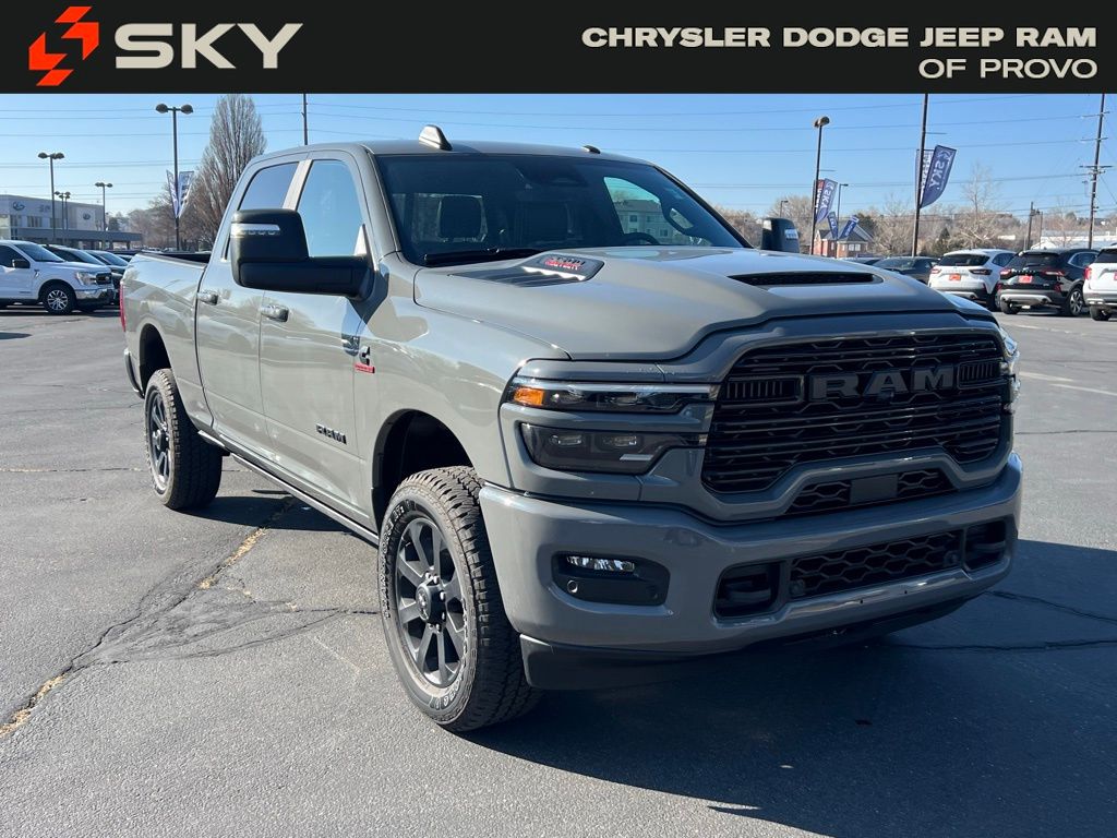 Elevate your driving experience with this exceptional 2026 Ram 2500 Laramie. Meticulously crafted to deliver uncompromising performance and unparalleled luxury, this powerhouse is poised to redefine your expectations. Boasting a commanding 6.7L I6 Cummins Diesel Turbocharged engine, this Ram 2500 Laramie is engineered to conquer any terrain. Paired with an 8-speed automatic transmission and 4-wheel drive, it seamlessly blends raw power with exceptional handling. Upgrade your commute with features like navigation, leather upholstery, and a premium Harman/Kardon sound system. Stay connected with the Uconnect 5 Navigation system and its expansive touchscreen display. Safety is paramount, and this Ram 2500 Laramie delivers with advanced features like Adaptive Steering and Traffic Sign Recognition. Experience the peace of mind that comes with knowing your vehicle is equipped to keep you and your loved ones secure. Designed to impress, the exterior of this Ram 2500 Laramie commands attention. The bold, black-accented grille, sport performance hood, and 20-inch black painted aluminum wheels exude a commanding presence. The MOPAR deployable bed step and spray-in bedliner add both style and functionality to the package. Whether you're tackling tough jobs or seeking a luxurious daily driver, this 2026 Ram 2500 Laramie is the ultimate choice. Discover the perfect blend of power, technology, and sophistication that will elevate your driving experience.