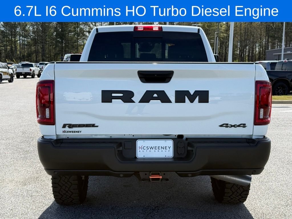Commanding the road with unmatched capability, the 2026 Ram 2500 Rebel is a true force to be reckoned with. This exceptional truck boasts a powerful 6.7L I-6 Diesel Turbocharged (Cummins) engine, delivering exceptional performance and towing capacity that will conquer even the most demanding terrain. Meticulously designed to provide the ultimate in comfort and convenience, this 2026 Ram 2500 Rebel comes equipped with a wealth of premium features. From the advanced Uconnect 5 Navigation system with a stunning 12-inch display to the heated steering wheel and ventilated front seats, every detail has been thoughtfully crafted to enhance your driving experience. Elevate your adventures with the 2026 Ram 2500 Rebel's impressive off-road capabilities, including the Quick Order Package 24R Rebel, Off-Road Info Pages, and Selectable Tire Fill Alert. Conquer the toughest terrain with confidence, knowing that your vehicle is equipped to handle any challenge. Safety is paramount, and the 2026 Ram 2500 Rebel delivers with a comprehensive suite of advanced safety features. From the ParkView Rear Back-Up Camera to the Emergency Vehicle Alert System (EVAS), this truck prioritizes your well-being and the well-being of those around you. Seamlessly integrate your digital life with the 2026 Ram 2500 Rebel's cutting-edge technology. Enjoy the convenience of Apple CarPlay, Android Auto, and Amazon Alexa integration, as well as the 4G LTE Wi-Fi hotspot for on-the-go connectivity. Whether you're tackling the great outdoors or navigating the daily commute, the 2026 Ram 2500 Rebel is the ultimate companion. Experience the unrivaled power, capability, and refinement that this exceptional truck has to offer.
