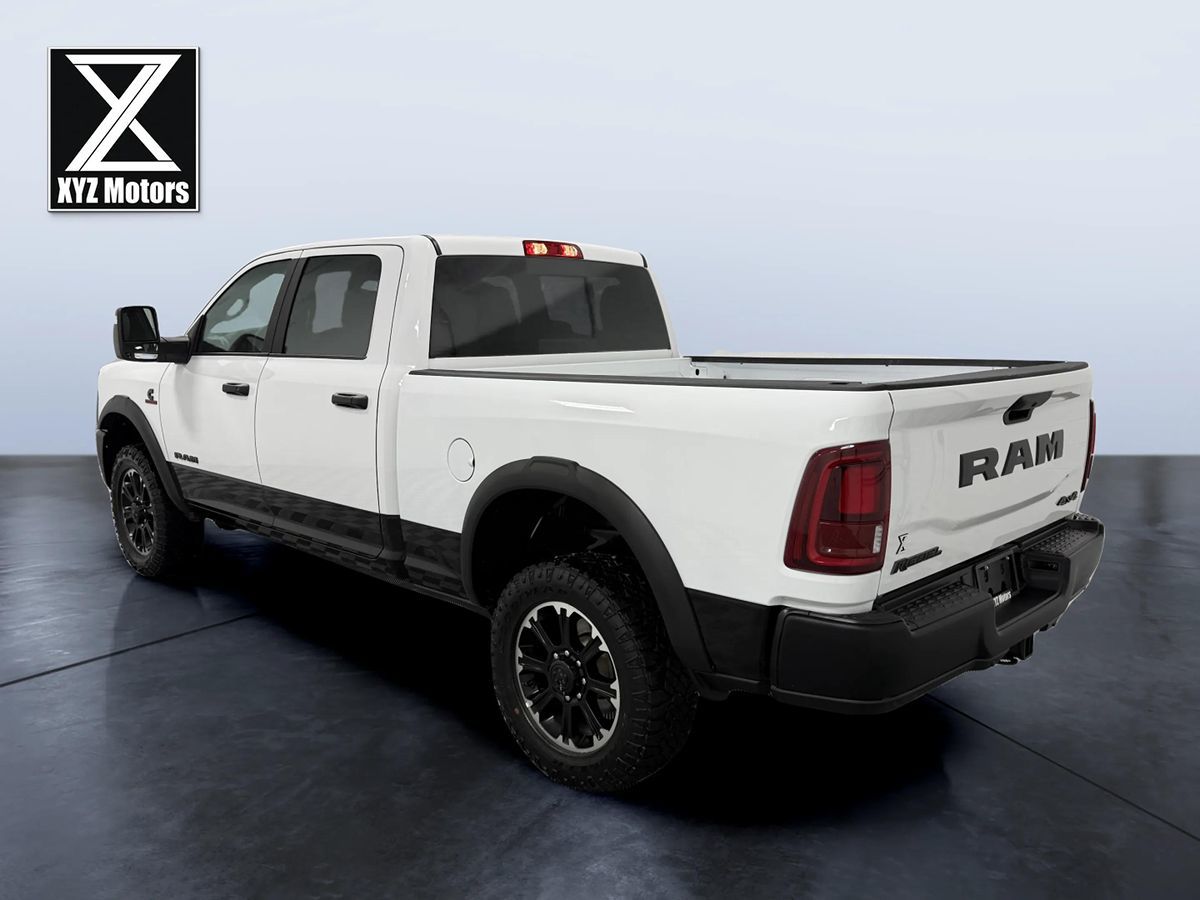 With diesel muscle and off-road tuning, our One Owner 2026 Ram 2500 Rebel Crew Cab 4X4 in Bright White delivers enhanced capability for heavy hauls. Motivated by a High-Output TurboCharged 6.7 Liter Cummins 6 Cylinder supplying 430hp and 850lb-ft of torque to an 8 Speed Automatic transmission. A rugged Rebel suspension, hill-descent control, and electronic limited-slip differential raise the bar for off-road performance in this Four Wheel Drive truck, which shows off LED lighting, fog lamps, a Mopar sport hood, powder-coated bumpers, black alloy wheels, matching fender flares, multifunction trailering mirrors, a 115V/400W outlet, and a Class V receiver hitch. Highlighting our Rebel cabin are heated power front seats embossed with distinctive tread-pattern designs. You can also enjoy a heated and wrapped steering wheel, dual-zone automatic climate control, keyless access and ignition, remote start, and power-adjustable pedals. A 12-inch driver display and an 8.4-inch touchscreen help create a high-tech environment with Off-Road Info Pages, full-color navigation, Wi-Fi compatibility, Alexa Built-in, Android Auto/Apple CarPlay, voice command, Bluetooth, and six-speaker audio. RAM supplies top-shelf safety measures, including a rearview camera, parking sensors, hill start assistance, tire pressure monitoring, trailer sway control, and more. That makes our 2500 Rebel a great way to boost your driving! Save this Page and Call for Availability.