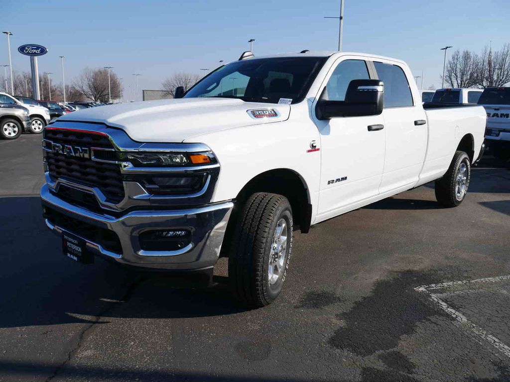 Our No Accidents Reported, Diesel-powered 2026 Ram 3500 Big Horn Crew Cab 4X4 with the Heated Steering Wheel and Seats Package in Bright White combines capability and everyday comfort to help drive your business forward. Powered by a TurboCharged 6.7 Liter High Output Cummins Diesel 6 Cylinder serving up 370hp and 850lb-ft of torque, an 8 Speed Automatic transmission so that you can pull with bold confidence. This Four Wheel Drive truck also comes with an anti-spin rear differential to get a better grip on hard work, and it stands strong with a rugged Ram design. Exterior details include LED lighting, fog lamps, heated power-trailer mirrors, chrome bumpers, alloy wheels, a skid plate, and a Class V receiver hitch with an LED hitch lamp. The result is one good-looking truck! Our Big Horn cabin rewards you with satisfying features engineered for everyday use. It's easy to stay relaxed on the road with supportive heated cloth seats, a heated steering wheel, a tilt-adjustable steering wheel, air conditioning, power accessories, pushbutton ignition, and keyless entry. Digital convenience comes into the picture with a 12.0-inch touchscreen, a 3.5-inch driver display, Uconnect 5, WiFi compatibility, Apple CarPlay/Android Auto, Bluetooth, voice command, and a nine-speaker Alpine sound system. RAM inspires safer trucking with advanced driver assistance from adaptive cruise control, automatic braking, a rearview camera, forward collision warning, parking sensors, trailer sway control, hill start assistance, and more. With all that, our 3500 Big Horn is built for utter dominance! Save this Page and Call for Availability. We Know You Will Enjoy Your Peterson Autoplex Stampede Test Drive Towards Ownership! Thank you for considering Peterson Chrysler Dodge Ram Jeep for your Pre-owned purchase today!