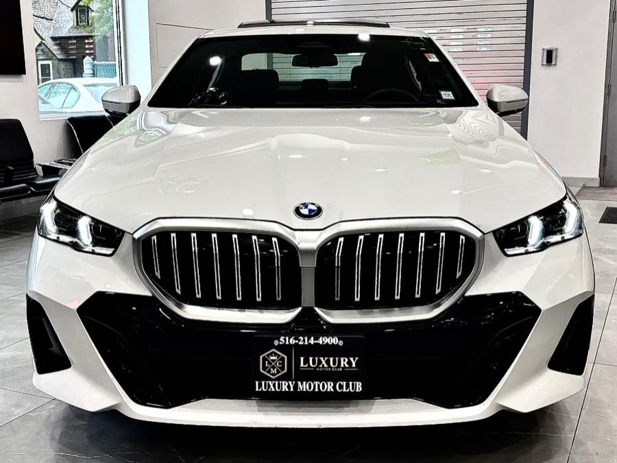 This 2025 BMW 5 Series is available at Luxury Motor Club in Franklin Square, NY. It features a 540i xDrive Sedan with an Alpine White exterior and Black interior. The vehicle includes advanced technology and safety features such as a blind spot monitor, lane keeping assist, and a backup camera. The price is $59,850, making it a well-equipped and stylish sedan.